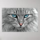 Grey and Black Tabby Cat with Beautiful Blue Eyes Poster