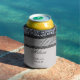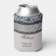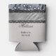 An elegant design, this grey and blue faux black lacy can cooler features a printed design showcasing a grey background highlighting the bride's name and wedding date in black. Above the name is grey lace outline image and a blue laced image at the top half of the can cooler. Add to cart today!