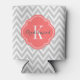 Cute trendy monogrammed can or bottle cooler with a preppy chevron pattern. Personalise it with a custom monogram or other text in a chic quatrefoil frame. Click Customise It to change text and fonts to create a unique one of a kind gift for your bridesmaids and wedding party! Contact me before ordering to customise patterns or design to coordinate with any wedding colours.