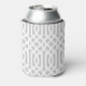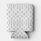 Cute trendy monogrammed can or bottle cooler with a preppy trellis pattern. Personalise it with a custom monogram or other text in a chic quatrefoil frame. Click Customise It to change text and fonts to create a unique one of a kind gift for your bridesmaids and wedding party! Contact me before ordering to customise patterns or design to coordinate with any wedding colours.