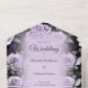 Introducing this exquisite lavender rose All in One wedding invitation where elegance meets sophistication. This invitation is designed to captivate your guests from the moment they lay eyes on it, featuring stunningly realistic lavender roses set against a luxurious dark grey background. The All-in-One wedding invitations are both beautiful and practical by combining the wedding invitation with an easy to remove perforated RSVP postcard. They are also quick and easy to prepare for mailing. Simply address the invitation, fold the back flap and seal with the included clear stickers. Once your guests receive the pre-addressed invitation they simply tear off the perforated RSVP card and drop it in the mail.