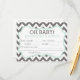 Pass out these cards at your baby shower for a fun game that you get to cherish forever! Featuring a dark grey and white chevron striped print background and mint green accents.