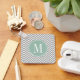 Grey and Mint Green Chevron Pattern with Monogram Key Ring