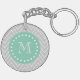 Grey and Mint Green Modern Chevron Monogram Key Ring