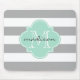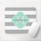 Grey and Mint Nautical Stripes Custom Monogram Mouse Pad