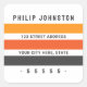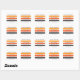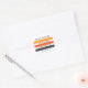 Square return address label featuring three stripes in dark grey and two shades of orange and customisable template fields for your name and address. Dark grey text.