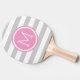Grey and Pink Preppy Stripes Monogram Ping Pong Paddle