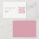 A clean grey and pink layout with wide letter spacing keeps email, phone, and website easy to read while spotlighting a minimalist pink QR code for instant access to a modern business website or social media. Upload an existing code or request help generating one to link a freelancer web address, portfolio, or profiles for professional small business promotion. Designed for simple bold colour QR convenience, the reverse offers a blush block for notes or branding accents.