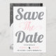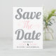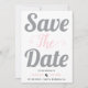 Grey and pink typography and photo on the back save the date