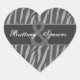 Grey and Silver Zebra Wedding Bride and Groom Heart Sticker