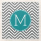 Grey and Teal Chevrons - Custom Monogram Glass Coaster