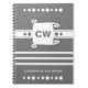Grey and white add initials name striped notebook