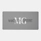 Upgrade your workspace with this sleek and professional grey and white desk mat. Featuring a minimalist design with your name and initials prominently displayed, this large mat exudes sophistication and style. Perfect for a modern office, it provides ample space for your keyboard, mouse, and other essentials, creating an organised and refined work area. Crafted from high-quality materials, it ensures a smooth and durable surface for daily use. The customisable feature adds a personal touch, making it an ideal gift for professionals who appreciate elegance and functionality in their office decor.