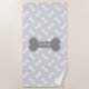 Grey And White Dog Bones Pattern With Custom Name Beach Towel