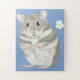 This lovely children’s jigsaw puzzle features a cute fluffy Grey and white Hamster holding a flower against a