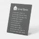 This tabletop sign displays a list of house rules. At the top, there's a house. The display text next to the house says 'House Rules' Under them both are 9 rules: 1. If you drop it, pick it up. 2. If you take it out, put it back 3. If you turn it on, turn it off. 4. If you open it, close it. 5. If you break it, fix it. 6. If you can't fix it, find someone who can. 7. If you soiled it, wash it. 8. If you make a mess, clean it up. 9. If it's not yours, leave it alone.