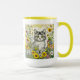 Grey and White Kitty Cat Sitting in Flowers Mug