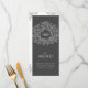 Dark charcoal grey and white wedding dinner menu. Edit this 4 course menu with your own meal option wording. Simple yet modern hand drawn leaves and monogram design. © Original drawing and design by Sarah Trett for www.mylittleedenweddings.com exclusively on zazzle.