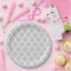Grey and White Moroccan Quatrefoil Paper Plate