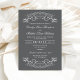 A dramatic portrait wedding invitation with white ornate scroll flourishes set against a rich grey background. The reversed colour palette gives this classic filigree design a bold, modern edge while maintaining its traditional elegance. All text and details are fully customisable.