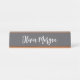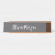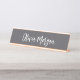 Elegant desk nameplate features your name, title, or choice of personalisation in white hand scripted cursive lettering on a rich grey background.