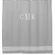 Add a bit of relaxed elegance to your bath with this stylish shower curtain. Classic white stripes and a three letter monogram add just the right touch to the light grey background.