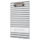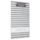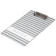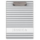 Grey and white striped pattern clipboard featuring a personalised name print on front and back. For matching grey striped items and more colour options check out the full collection below and visit Dots & Stripes Pattern Design Studio by Maggie B for more personalised stationery.