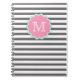 Grey and white stripes, Monogram Notebook
