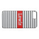 You will get compliments everywhere you go with this casemate phone case. Featuring a Grey and White striped design with red throughout the middle, customise your name.
