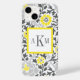 Grey and Yellow Floral Damask Custom Monogram Case-Mate iPhone Case