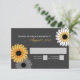 Grey, yellow and white flowers over slate grey response card to match invitations. Elegant and modern flower design that you can customise for weddings or any fine occasion.