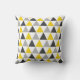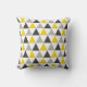 Geometric throw pillow in grey and yellow. Machine washable. Made in the U.S.A. Insert included. High quality cotton or polyester, available in many sizes and colours. Decorative square and rectangular modern accent pillows with geometric triangle pattern covers, perfect for the living room couch, family room or bedroom.