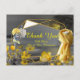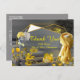 Grey and yellow tulips, daisies with a sunset announcement postcard