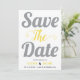 Grey and yellow typography and photo on the back save the date