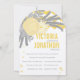 Yellow Elegance Cute Whimsical Yellow Hearts with Modern Fonts Yellow and Grey Vintage Modern Geometric Chevron Pattern Wedding Invitation. This Sweetly Illustrated Pattern has Acorns Fern Ranunculus and Leaves that is perfect for an elegant outdoor or casual wedding