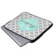 Grey Aqua Elegant Pattern Monogram Laptop Sleeve