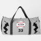 Grey Baseball Ball Player Silhouette Name Number Duffle Bag