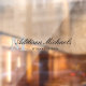 Neutral, elegant window cling with your initial in grey under your name and title in black.