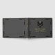 Fantasy inspired dragon-themed wedding guestbook in dark grey with black dragons and gold foil details with gold foil fonts too. The perfect gold foil guestbook for a fantasy wedding, dragon wedding, or Halloween wedding. Two black dragons forming a heart with their wings. Dragon-wing inspired corners in black and gold foil for a unique dragon look for your wedding.