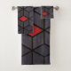 Grey Black Red Cubes: geometric art laser engraved on wood, painted with alcohol inks.