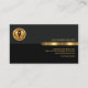 At the upper left corner is a gold pen nib logo you can use. To the right of this, just above the gold stripe is the business name. The black layer below has your prestigious name, job title and the contact details. A slogan caption to publicise your services is at the lower right corner.