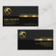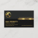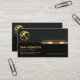 Overleaf, the same design theme is used. The upper layer has the gold logo at the corner with the business name above the gold stripe. The black layer underneath houses your contact details and a slogan option to publicise your services.