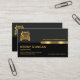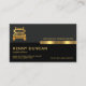 Overleaf, the same design theme is used with the gold logo and your prestigious name at the top. The black column underneath houses the contact details and a slogan caption. All lettering are in faux gold.