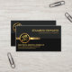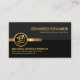 A grey and black column layered design features a faux gold stripe near the centre. Riding on this gold line of success is a gold "letter-e home wiring" logo you can use alongside its business name and contact details near the base. Your prestigious name and a slogan caption option which you can change is over at the top right corner of the card. The gold letter-e from the logo can represent your prestigious name, electrician etc.