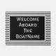 Perfectly chic, and classic black, white and grey Welcome Aboard The _________ doormat for your boat of marina slip customisable with your boats name