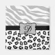 Colourful zebra stripes and cheetah skins for graphic design is one of the hottest art and design trends, and is extremely popular from fashion to home decor. This sophisticated grey and white zebra and cheetah print collection is one of several colour combinations available. A grey emblem creates a personalisation area. This is fully customisable to personalise to include your name, monogram initials, business name or other words to convey your message. Go wild with these wild skins designs!