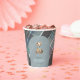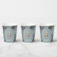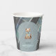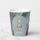 Welcome your little one with timeless charm. This baby shower paper cup features a sweet teddy bear with a blue ribbon. The background showcases a traditional dark grey, with subtle hints of slate blue and green for a fresh, modern touch. Perfect for those who love a sophisticated yet cosy look, this paper cup blends tradition with just the right dash of contemporary flair.