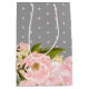 Grey | Blush Pink Peonies Wedding Medium Gift Bag