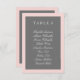 Elegant and minimal wedding plan cards with room for up to ten guests in white text atop a grey background with blush pink borders.