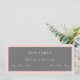 Elegant and minimal wedding plan cards for the top table in white text atop a grey background with blush pink borders.